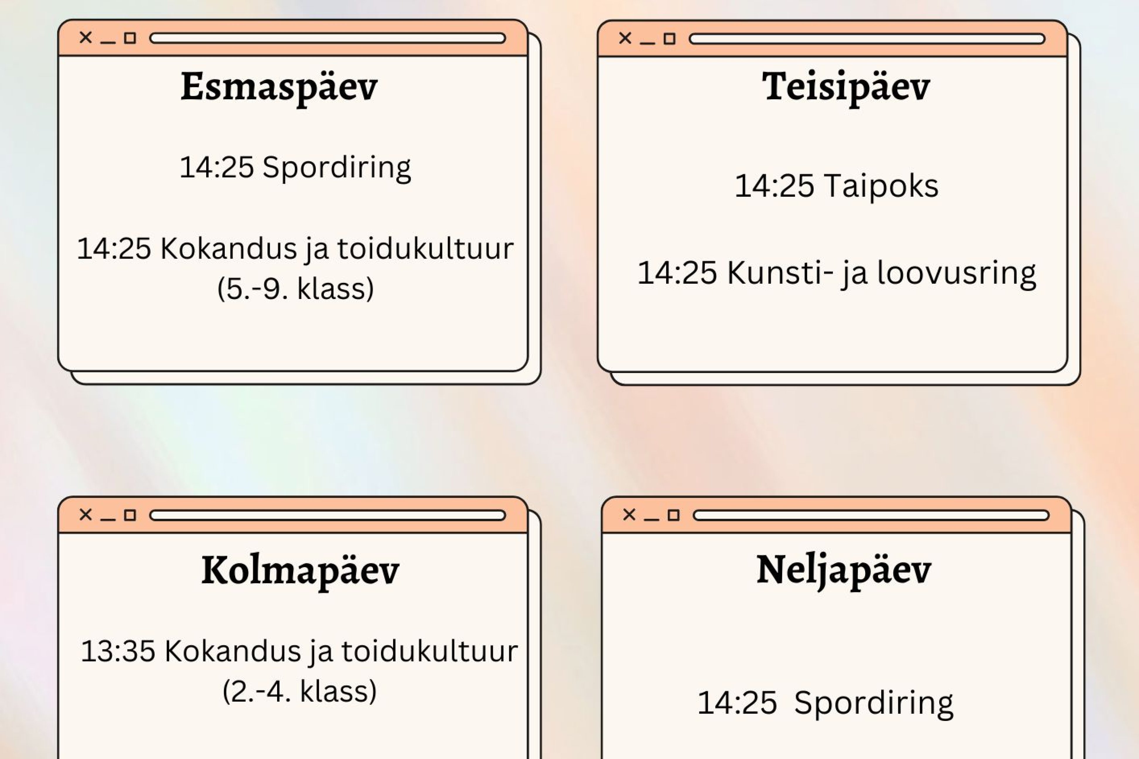 Palun esitada kõigil uued avaldusedlink opens on new page huviringides käimiseks.
