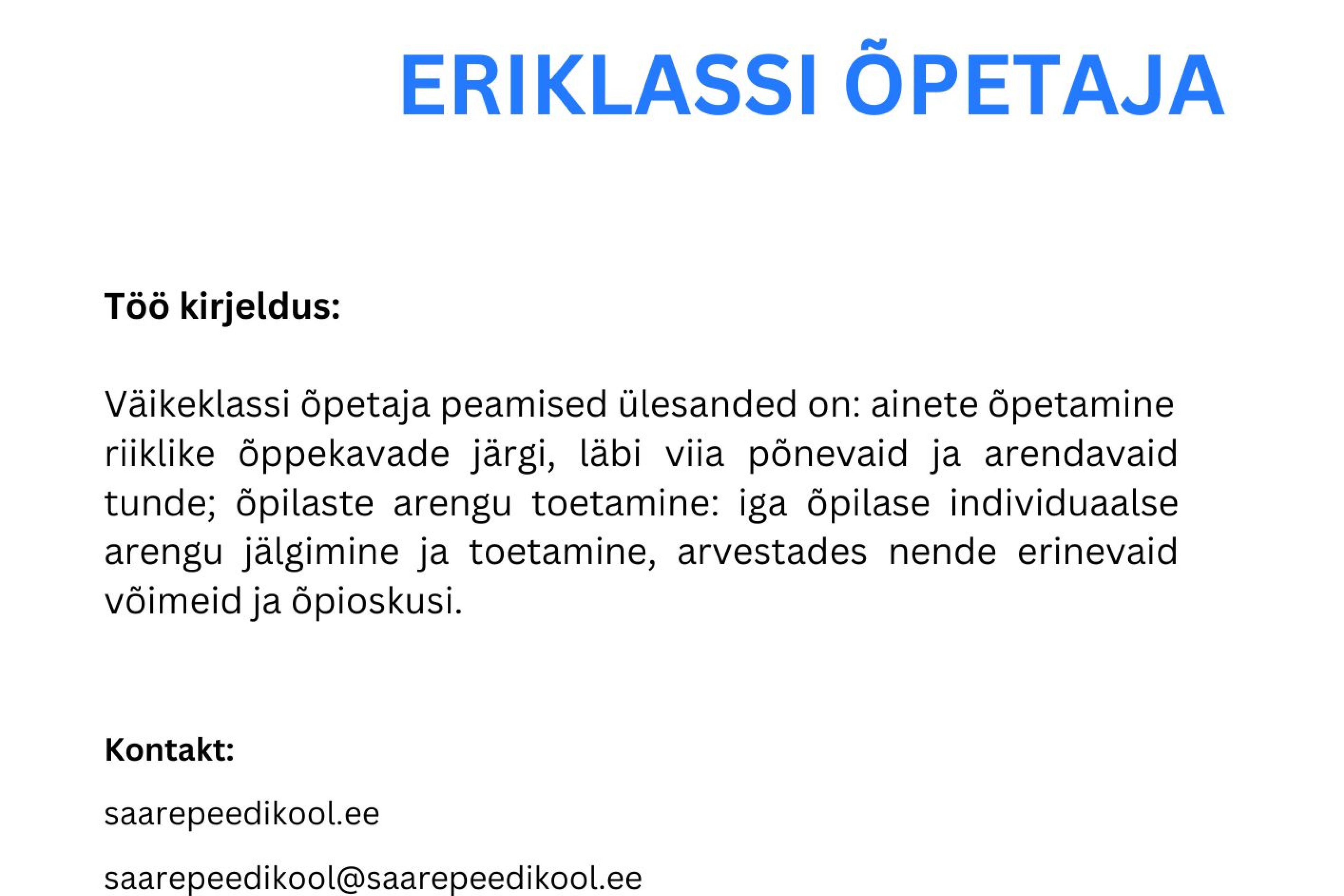 Otsime eriklassi õpetajat.