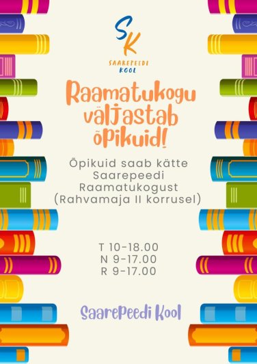 1.-9. klassi õpikute laenutamine toimub Saarepeedi raamatukogus.
