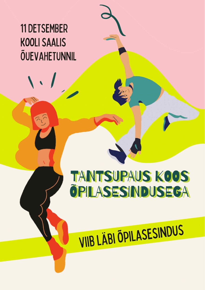 Kogu õpilasesindus kutsub teid neljapäeval, 11. detsembril õuevahetunni ajal saali väikesele tantsupausile. Liigutusi näitavad ette õpilasesinduse liikmed.