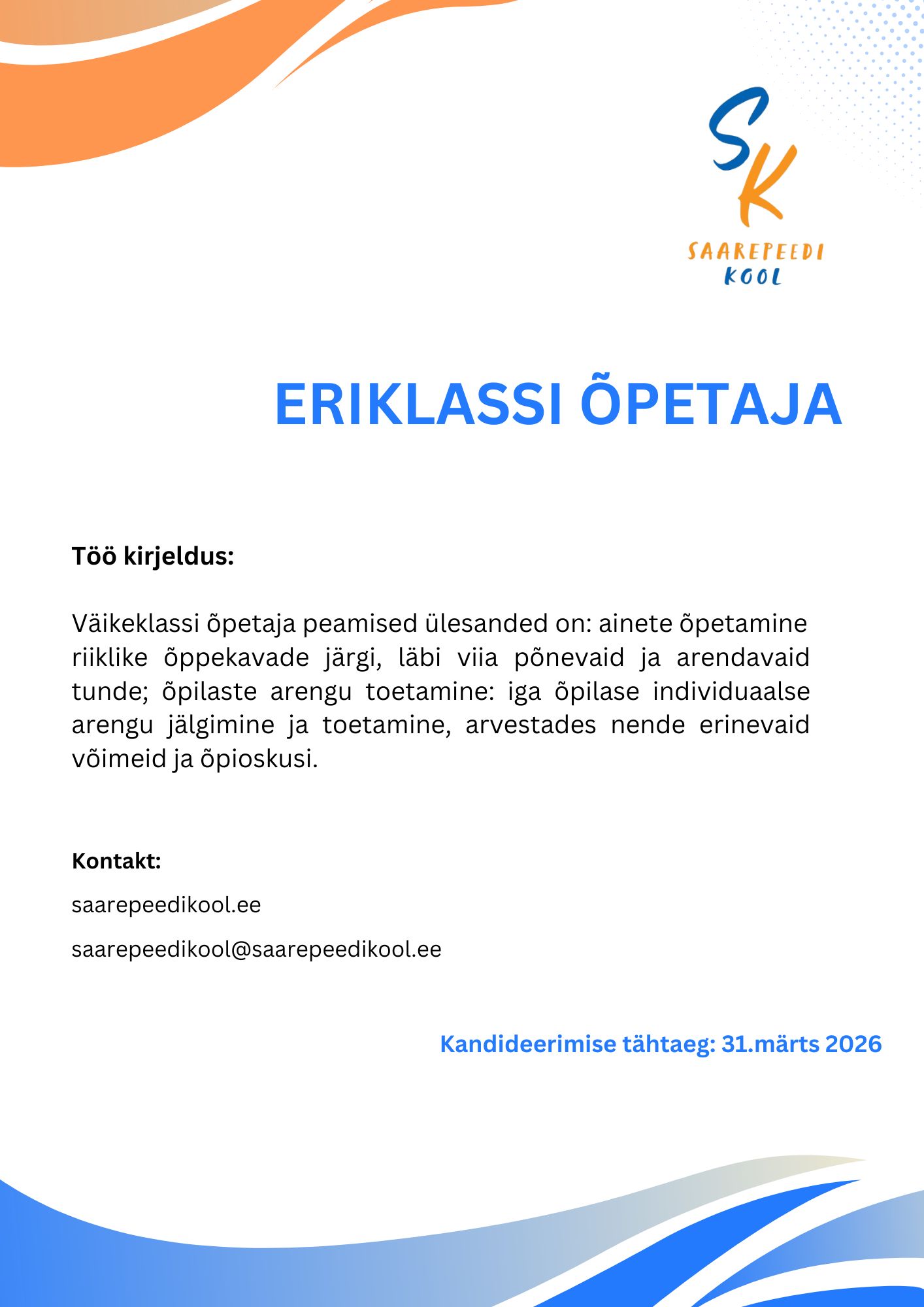 Kandideeri siin: saarepeedikool@saarepeedikool.ee
